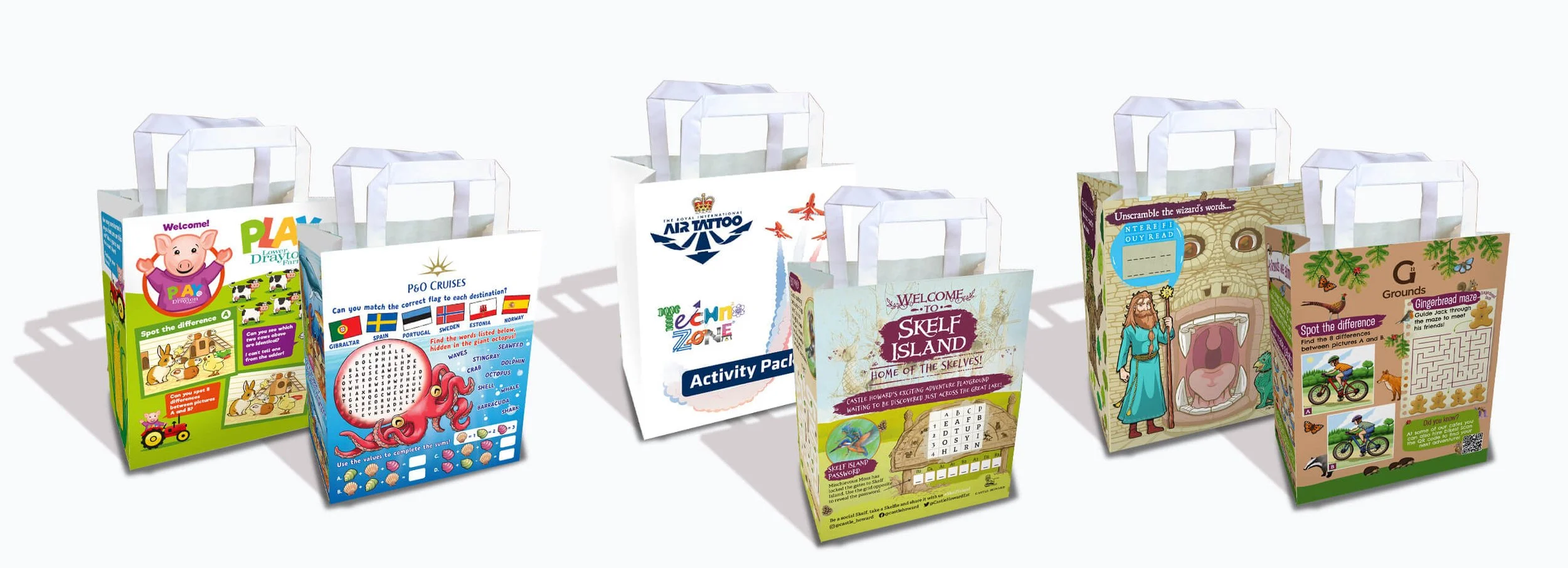 Our bespoke bags are designed to reflect the key features of your brand and engage children with fun and educational puzzles.