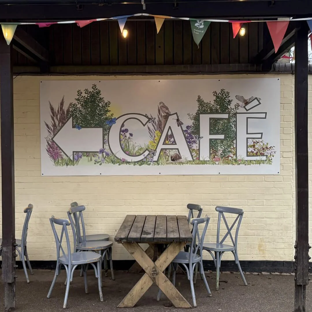 Hand-illustrated scene die-cut and reverse printed on adhesive vinyl for National Trust Box Hill.