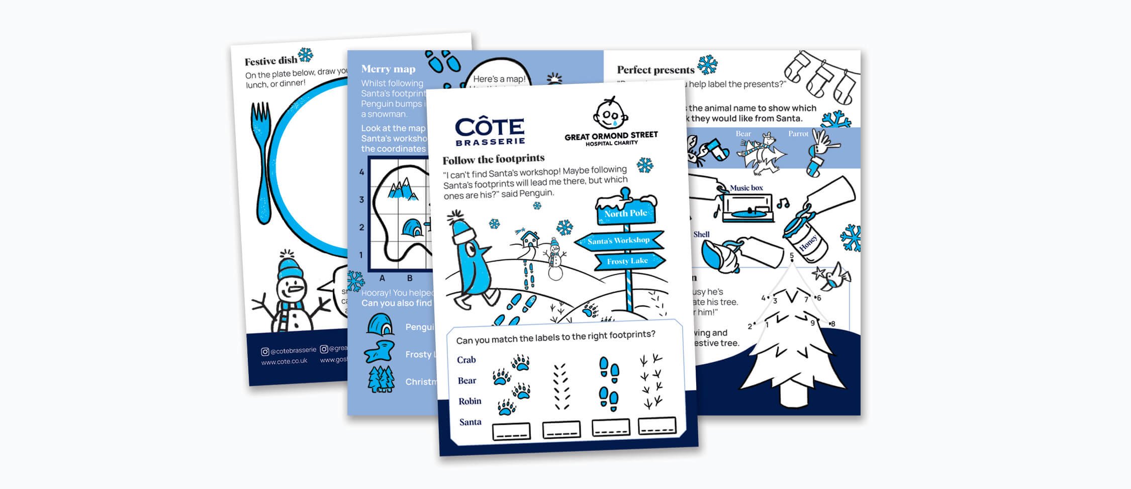 Seasonal children’s activity book with large colouring in centre spread for Côte, created with Great Ormond Street Hospital Charity.